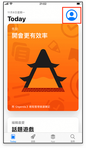 下载完成后,在 App Store 中点击 右上角图标 然后 滑倒底部 登出账号;