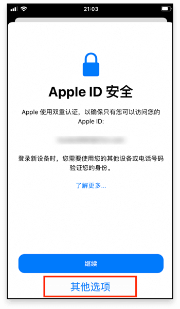 切记!在 Apple ID 安全页面点击 其他选项,若没有此提示请忽略;